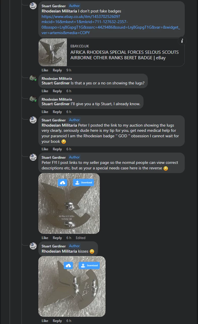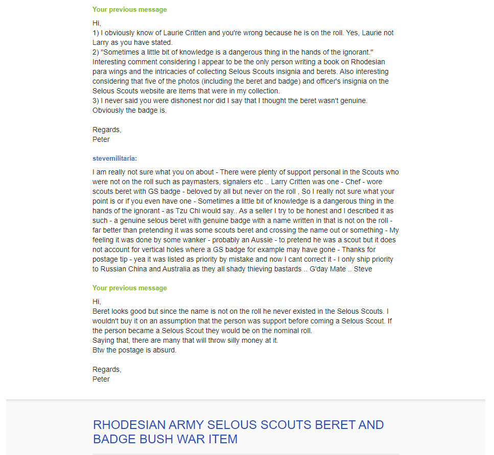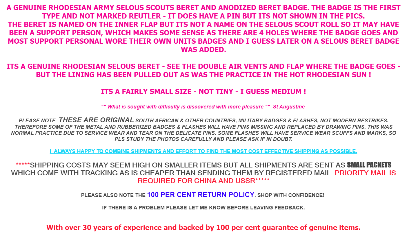 A gallery of fake Selous Scouts OR’s beret badges sold over the years by multiple sellers.