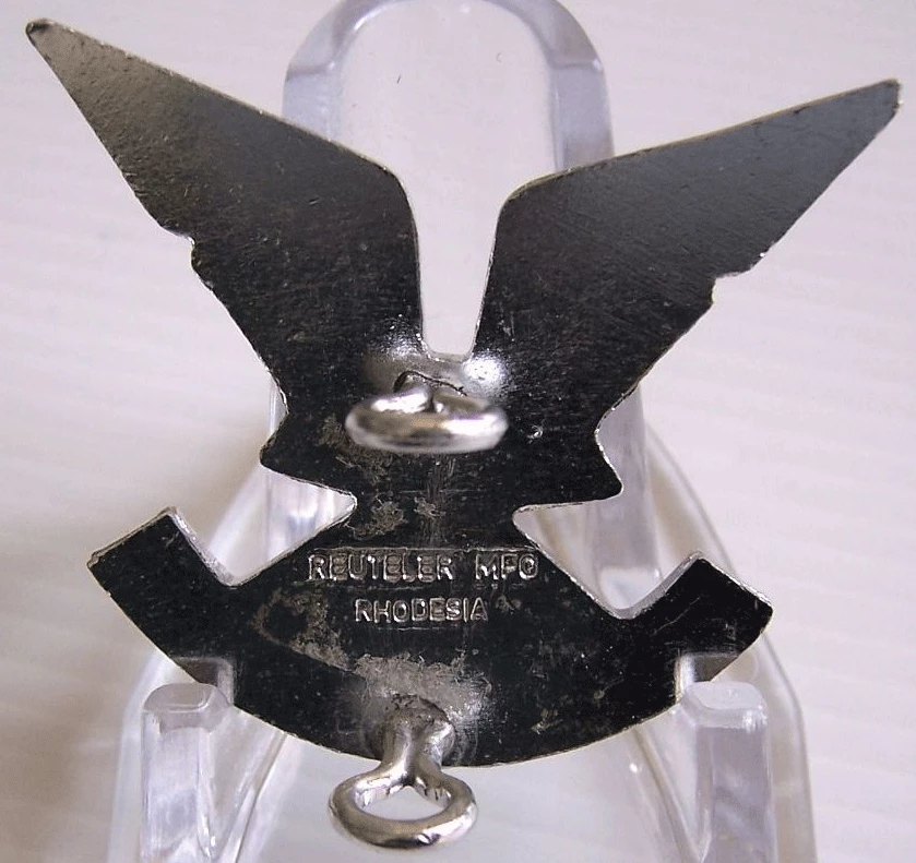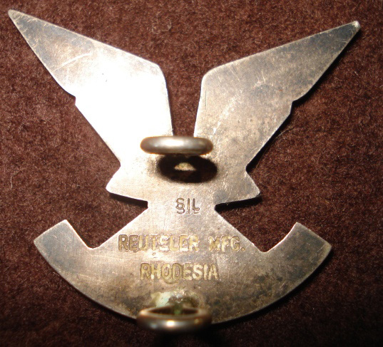 This is the reverse of a genuine Selous Scouts officer’s beret badge as made by Reuteler Manufacturing. There were a number of different stampings that were used.