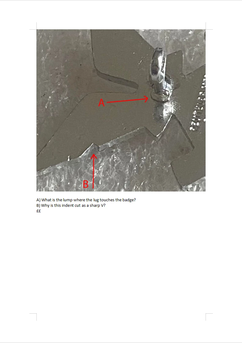 In short he never showed the lugs as I asked. The photo of holding the badge in his hand and showing the top part of the lugs, is not of the same badge. The badge he is holding is genuine but it is not the badge that is displayed here or that he had listed on eBay.